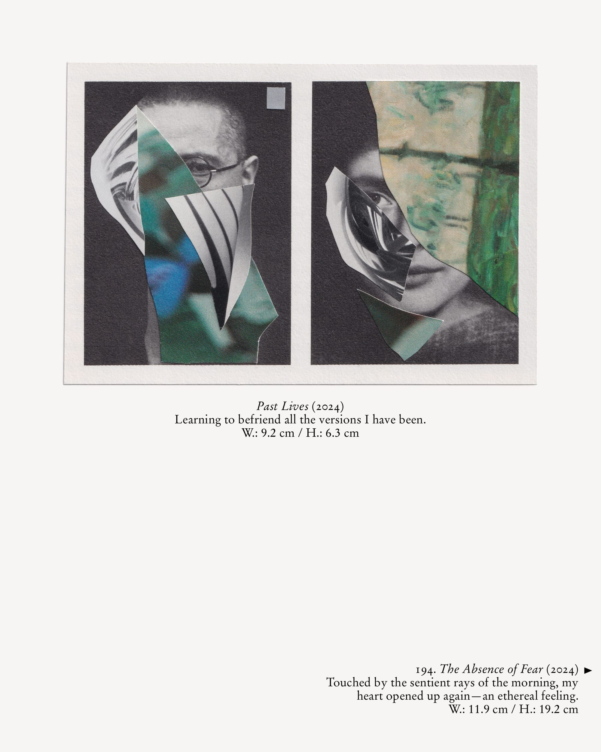 His artistic practice is an attempt to observe, grasp, and narrate these worlds with poetic sensitivity and detail. In recent years, the act of collage-making, combined with the recontextualisation of found materials, has become his main focus in storytelling. His layered and textured visual language offers viewers a glimpse into their own imagination, inviting them to step into an intimate dialogue with themselves, questioning learned perceptions and behaviours.